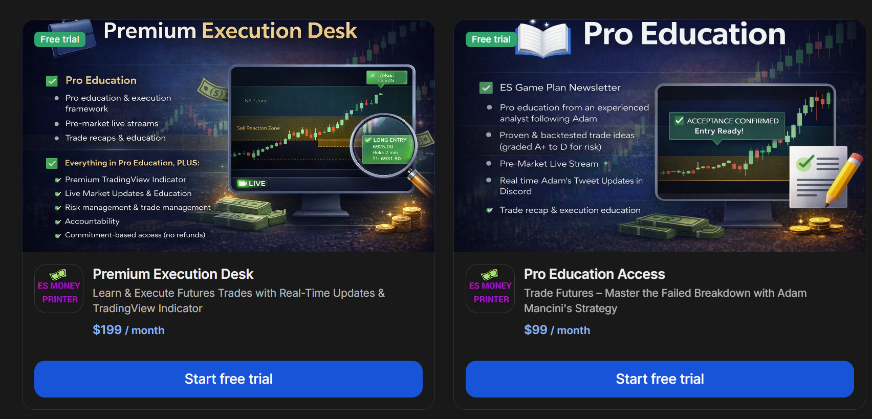 The ES Game Plan is designed to help traders learn and execute Adam Mancini–style Failed Breakdown setups with structure, discipline, and clarity.